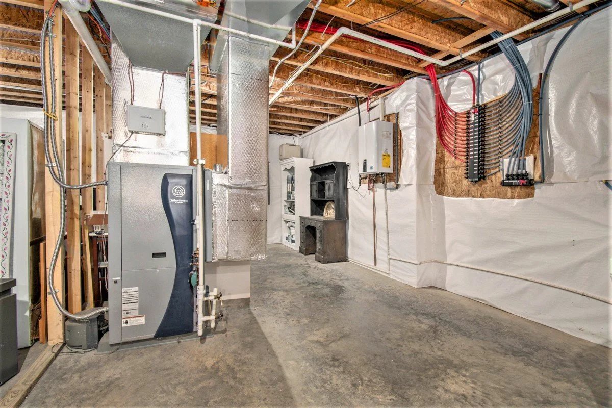Step out of the primary suite into a 3 seasons room with beautiful nature views! Three additional bedrooms, each with their own unique charm, provide plenty of room for family members or guests.One of these rooms provides a unique feature as a potential mother-in-law suite, a large bedroom suite, or a nice bonus space! One section has been purposefully planned with plumbing for a sink and outlet for a refrigerator to provide a small kitchenette area in the future. One of the standout features of this home is the unfinished space in the basement, offering endless possibilities. With the potential to add additional bedrooms with 2 egress windows and existing plumbing for a bathroom, this space allows you to customize the home to fit your specific needs.